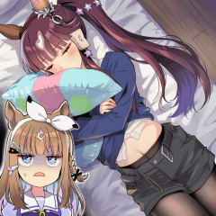 0: 名無しのトレーナー 25/10/16(木)06:48:11 No.1363271073 キタ━━━━━━(゚∀゚)━━━━━━ !!!!! 1: 名無しのトレーナー 25/10/16(木)06:48:34 No.1363271095 なんや 2: 名無しのトレーナー 25/10/16(木)06:50:09 No.1363271189 そういうの止めた方がいいわよラ…ラッキーライラックさん… 3: 名無しのトレーナー 25/10/16(木)07:01:26 No.1363271881 ちゃうねんそういうんと 5: 名無しのトレーナー 25/10/16(木)07:38:17 No.1363274851 この枕のカラーリング… 6: 名無しのトレーナー 25/10/16(木)07:44:32 No.1363275479 よく見たら思いっきりビリーヴの私服でダメだった 7: 名無しのトレーナー 25/10/16(木)07:45:34 No.1363275569 ビリーヴ先輩にララに気をつけるように伝えておくわ… 8: 名無しのトレーナー 25/10/16(木)07:46:07 No.1363275629 ラ…ッキーライラックさんライン越えは良くないと思うわ 9: 名無しのトレーナー 25/10/16(木)07:46:10 No.1363275630 いや同室やしかまへんよ 10: 名無しのトレーナー 25/10/16(木)07:49:36 No.1363275973 偽物どすえ~… 11: 名無しのトレーナー 25/10/16(木)07:52:58 No.1363276327 そういえばホッカムリのほうの同室誰だっけ 12: 名無しのトレーナー 25/10/16(木)07:53:48 No.1363276409 服のサイズ考えなさいよ! 13: 名無しのトレーナー 25/10/16(木)07:54:34 No.1363276485 同室だから服も失敬し放題なのか… 14: 名無しのトレーナー 25/10/16(木)07:54:58 No.1363276517 >そういえばホッカムリのほうの同室誰だっけネオユニ 15: 名無しのトレーナー 25/10/16(木)07:55:21 No.1363276549 シャツとか結構ピチピチでダメだった 16: 名無しのトレーナー 25/10/16(木)08:04:55 No.1363277750 >>そういえばホッカムリのほうの同室誰だっけ>ネオユニアイブラとユニスティのほうがララビリよりよっぽど健全なのおかしくない? 17: 名無しのトレーナー 25/10/16(木)08:05:21 No.1363277815 うちとビリーヴさんの部屋も健全やけど 18: 名無しのトレーナー 25/10/16(木)08:09:18 No.1363278382 >うちとビリーヴさんの部屋も健全やけどじゃあその格好は何よ! 19: 名無しのトレーナー 25/10/16(木)08:09:56 No.1363278482 と…とりあえず通報しておいたわ! 20: 名無しのトレーナー 25/10/16(木)08:17:08 No.1363279630 >じゃあその格好は何よ!……ルームメイトの服着たくなることくらいアイさんにもあるやろ 21: 名無しのトレーナー 25/10/16(木)08:17:18 No.1363279658 ひとたび伸びた服は二度とは… 29: 名無しのトレーナー 25/10/16(木)10:03:33 No.1363295518 ララちゃん結構ビリーヴの短パンが似合うな… 37: 名無しのトレーナー 25/10/16(木)10:17:24 No.1363297624 いつものララ!呼びはどしたん? 38: 名無しのトレーナー 25/10/16(木)10:23:28 No.1363298553 いや…ちょっと付き合い方考えたほうがいいかもって思って… 41: 名無しのトレーナー 25/10/16(木)10:35:32 No.1363300547 ブラワンの服はおひさまの匂いしそう 引用元:…
