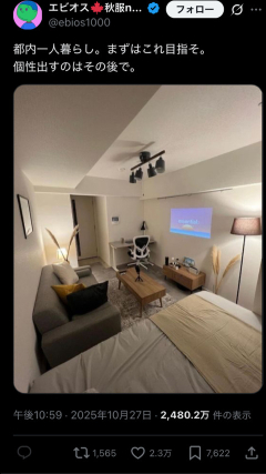 1:黒トラ(ジパング) [US]:2025/10/30(木) 13:37:44.43 ID:8fmVcMqP0 BE:732289945-2BP(2000) こういう都内のウサギ小屋みたいな狭い家で一生懸命オシャレにしようとしてる人見るとマジで見てて恥ずかしくなるし切ない… 普通の散らかった部屋よりも見てて痛々しい…— YUUNA_BURUBESUM (@YUUNA_BURUBESUM) October 30, 2025 11:アムールヤマネコ(茸) [AR]:2025/10/30(木) 13:40:20.33 ID:arQRrKOh0 田舎者って東京にやたら噛みつくよね コンプレックスあるなら東京出てくればいいのにw 15:黒トラ(ジパング) [US]:2025/10/30(木) 13:40:43.55 ID:8fmVcMqP0 BE:732289945-2BP(2000) >>11 さっそく発狂してて草…