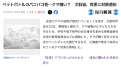 1 :                                  これで怖くないなわ  ペットボトルのパコパコ音…クマ嫌い? 文科省、教委に対策通知(毎日新聞) - Yahoo!ニュース  全国でクマの被害が相次いでいることを受け、文部科学省は30日、環境省と連名で、クマ被害から子どもたちを守るため、学校や登下校中の安全確保を求める事務連絡を全国の教育委員会などに通知した。クマが嫌う音を出せる空のペットボトルを携行するなど、北海道や東北で採用されているクマ対策も周知した。略  有効な携行品として「クマ鈴」「自転車のベル」のほか、クマが「パコパコ」という音を嫌うとし「空のペットボトル」を紹介している。全文はソースで                                                             3 :                                  そのパコパコする音やめろおおお👊🐻💢ドカバキグシャ                                                            4 :                                  これ🐻が裏でどんぐり渡して環境省に言わせてるんだよね…