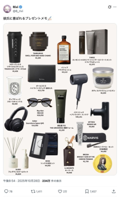1: 2025/10/31(金) 14:46:08.24 彼氏に喜ばれるプレゼントメモ✍🏻 pic.twitter.com/e2D1V6ZcG8— Rivi (@8_rivi) October 28, 2025 ※関連記事 【画像】この漫画の「ダメ人間」と付き合っている彼女の話、少し怖くて草wwwww…