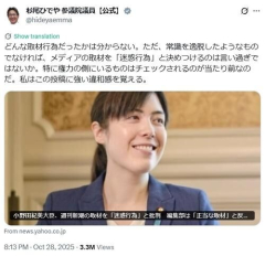 元TBSの立民議員、小野田紀美大臣の週刊誌「迷惑行為」投稿に再反論「国民の知る権利を制限」