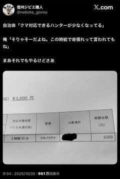 熊ハンターの出動拒否が続く北海道積丹町の副議長「これは反撃です」wwwwwww
