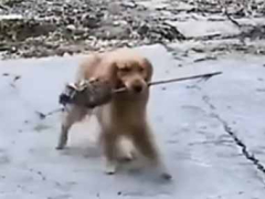 【とんだ災難】 イヌが木の棒を咥えてやってきた。そこにはハチの巣がついていた! → 私はこうなった…