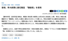 1 : 首相、李大統領に碁石贈呈 「鎌倉彫」を使用 高市早苗首相は、韓国の李在明大統領と10月30日に初会談した際、李氏に神奈川県鎌倉市の「鎌倉彫」を使った碁石と碁石入れのセットを贈った。李氏の故郷である慶尚北道安東市と鎌倉市が「パートナーシティ」提携を結んでおり、囲碁が趣味の李氏のため選んだ。首相に同行している佐藤啓官房副長官が1日、記者団に明らかにした。李氏は首相に韓国のりと韓国製の化粧品を贈った。 佐藤氏によると、会談で李氏は首相の地元・奈良の話題に触れ、首相は「ナラという言葉が韓国語で『国』を意味することを奈良県民はよく知っている」と返した。 2 : 奈良、韓国語だった 3 : 総理大臣の公式見解になった模様…