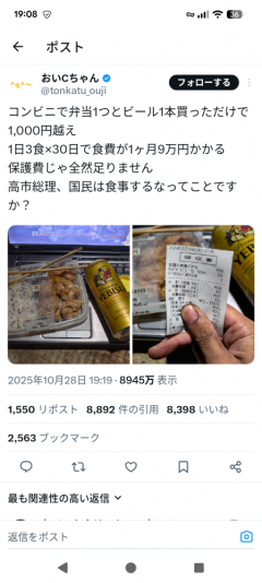 【画像】V豚ナマポ弱者男性「コンビニで弁当1つとビール1本買っただけで1,000円越え。1日3食×30日で食費が1ヶ月9万円かかる。保護費じゃ全然足りません」
