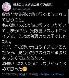 引用元: 608: Vtuberまとめ2025/11/02(日) 11:47:48.24 新人はまずこよりを登竜門として捉えるべきだな こよりの数字を安定して超えられるようになれば1流のVTuberだ 629: Vtuberまとめ2025/11/02(日) 11:48:37.16 >>608 まずはこより以上の配信を心がけるべきよ 647: Vtuberまとめ2025/11/02(日) 11:49:11.82 >>608 あたかもこよりが1軍みたいな言い方風説の流布に値しないか?😓 668: Vtuberまとめ2025/11/02(日) 11:50:14.87 >>647 1軍やろ ぺこみこ蝙蝠外交で成功してて独自の軍団も築いてるし 675: Vtuberまとめ2025/11/02(日) 11:50:34.14 >>629 それは壊れちゃう可能性のほうが高い こよりは耐久力だけなら上澄みだもん 692: Vtuberまとめ2025/11/02(日) 11:51:05.72 >>608 とりあえず新人ホロメンは1年間はこれ毎朝配信の最初に復唱させよう 717: Vtuberまとめ2025/11/02(日) 11:52:26.35 >>692 いやでもお前勘違いして声優上がりのホロメンにイキってるやん 720: Vtuberまとめ2025/11/02(日) 11:52:28.65 >>692 全ホロメンは毎朝これを唱和しろや😡 721: Vtuberまとめ2025/11/02(日) 11:52:29.21 >>629 そんなん無理 ほぼワーカーホリックのこより以上なんて年内持たない 731: Vtuberまとめ2025/11/02(日) 11:52:56.11 >>647 ホロライブ基準にしてるからバグるんだよ こよりは十分一軍レベル…