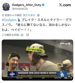 【MLB】ワールドシリーズ最終戦 ドジャースが延長戦を制して優勝!山本由伸が抑えて連覇達成!