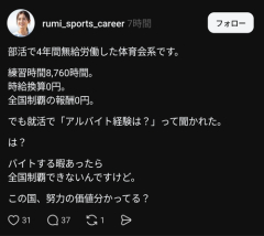 【悲報】体育会系女子「全国制覇しました」社会「うんで?バイト経験は?」