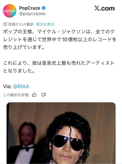 マイケルジャクソン、世界中で10億枚以上のレコード売上を記録し音楽史上最も売れた人物になる