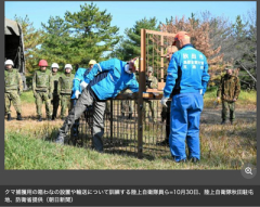 1: ななしさん@発達中  2025/11/04(火) 13:25:08.09  BE:595582602-2BP(5555)ID:JcIMFGeY0   防衛省は4日、クマによる人的被害が深刻な秋田県での駆除活動を支援するため、5日にも陸上自衛隊の部隊を派遣すると明らかにした。同日、県との間で合意を交わす見通し。銃器による駆除は行わず、猟友会のメンバーらや箱わなの輸送などの後方支援に当たる。    2025年度のクマによる全国の犠牲者は過去最多。小泉進次郎防衛相は4日の閣議後記者会見で、無制限にクマ対策を行うことはできないとした上で「国民の命と暮らしを守り抜くことを任務とする観点から支援することとした」と述べた。今回の派遣は自衛隊法第100条に基づく輸送事業として行うという。    防衛省は、自衛隊が銃器で駆除をしない理由に関し、鳥獣駆除訓練をしておらずノウハウがない他、自衛隊法などの法令上も任務として想定していないと説明している。…