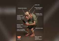 1: ななしさん@発達中 2025/11/04(火) 11:42:35.54 ● BE:194767121-PLT(13001)ID:vraae8GA0 頭ははげて腹はぽっこり…「25年後、人類はこう変わる」衝撃の警告=米国このモデルは、世界保健機関(WHO)や米疾病対策センター(CDC)などの関連資料を収集し、それをChatGPTに入力して生成したものだ。 WeWardは、AIが予測した人物を「サム(Sam)」と名付け、「運動不足が身体の外見と健康に及ぼす影響を医学的に視覚化した結果」と説明した。 公開されたサムの姿は、長時間の座式生活で消費カロリーが少なく、新陳代謝が低下して腹に脂肪が蓄積し、腹部肥満になっている。長時間、前かがみの姿勢でスマートフォンを使ってきたため、背中は丸まり、頭部が前方に傾き、いわゆる“猫背”の状態だ。目は充血している。 臀部や膝などの関節も硬くなり、血液循環が悪いため足首や足はパンパンにむくんでいる。また、座りっぱなしの生活による疲労や血行不良、栄養バランスの乱れによって髪の毛は細くなり脱毛が起こり、血管の健康も悪化して肌のハリを失い、色素沈着が進んでいる様子だ。…
