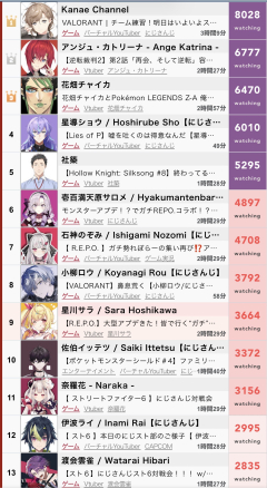 引用元: 761: Vtuberまとめ2025/11/05(水) 00:03:26.14 にじさんじ ぶいすぽ 783: Vtuberまとめ2025/11/05(水) 00:04:19.11 >>761 ざっっっっっっっこ ホロライブ最強!ホロライブ最強! 790: Vtuberまとめ2025/11/05(水) 00:04:31.29 >>761 どーすんのこれ 791: Vtuberまとめ2025/11/05(水) 00:04:33.02 >>761 ぶいすぽマジでどうしたんだ? 業界2位だったはずなのに 801: Vtuberまとめ2025/11/05(水) 00:04:48.17 >>783 痴漢のノリ出てますよ 822: Vtuberまとめ2025/11/05(水) 00:05:31.57 >>761 サロメよくやってる!! 偉いあのお気持ちファッションオタクな一般まんさんに負けるな! 824: Vtuberまとめ2025/11/05(水) 00:05:37.21 >>791 今日余が数字配りにいってたぞ 825: Vtuberまとめ2025/11/05(水) 00:05:45.08 >>761 終わったのはホロだけじゃなかったんだね 828: Vtuberまとめ2025/11/05(水) 00:05:46.76 >>761 ぶいすぽ下やべぇな 830: Vtuberまとめ2025/11/05(水) 00:05:54.06 >>791 流石にYouTuberもVtuberも飽きられた 838: Vtuberまとめ2025/11/05(水) 00:06:04.86 >>791 でも誰も辞めてないし たぶんギスギスで休止してないしぃ! 890: Vtuberまとめ2025/11/05(水) 00:07:40.46 >>761 ちなみに現在のにじ 907: Vtuberまとめ2025/11/05(水) 00:08:13.07 >>761 知らんかだたけどブイスポにも ルンルン亜種いるんやな 908: Vtuberまとめ2025/11/05(水) 00:08:16.47 >>890 終わりじゃん 913: Vtuberまとめ2025/11/05(水) 00:08:26.01 >>825 ホロが終わったって言ったら他から怒られるわ 918: Vtuberまとめ2025/11/05(水) 00:08:35.16 >>890 光り輝く2桁のにじの王 922: Vtuberまとめ2025/11/05(水) 00:08:44.43 >>890 ひん 929: Vtuberまとめ2025/11/05(水) 00:08:56.70 >>890 弱いにじ女と強いにじ女はやっぱ🦄飼ってる差か? 932: Vtuberまとめ2025/11/05(水) 00:09:02.08 >>890 同接2桁おるね 935: Vtuberまとめ2025/11/05(水) 00:09:03.92 >>761 ザコで草 950: Vtuberまとめ2025/11/05(水) 00:09:20.00 >>890 これは酷い… 965: Vtuberまとめ2025/11/05(水) 00:09:49.06 >>907 るんるん亜種後追いで投入するの戦略ザルすぎて笑う…