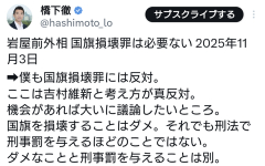 【悲報】橋下徹「国旗損壊罪には反対。刑事罰を与えるほどのことではない」