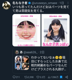 【画像】??「女は男と違って顔のパーツを細かく認識してます」←5万いいね!wwwwww