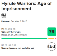 ゼルダ無双 封印戦記のメタスコア79点
