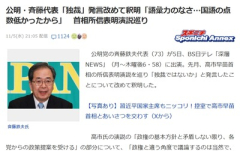 1: 名無し 2025/11/06(木) 07:36:02.45 ID:KpR4h1mE8B (1/1回レス) [] [-] 公明党の斉藤鉄夫代表(73)は5日放送のBS日テレ「深層NEWS」に出演し、 高市早苗首相の所信表明演説を巡り「独裁ではないか」と発言した件について「語彙力のなさ」と釈明した。 「表現が強すぎた」と述べつつも、発言の趣旨は「与党であっても異なる角度の議論が必要という問題提起だった」と説明した。 出典:Yahoo!ニュース ■要約 公明党の斉藤代表が、先月の「高市首相は独裁ではないか」との発言を改めて釈明した。 問題となったのは、高市首相が所信表明で「政権の基本方針と矛盾しない限り、他党の提案を受ける」と述べた部分。 これに対し斉藤氏は「それでは野党の役割が否定される」と反発したが、「語彙が強すぎた」として「真意は議論の場を広げるべきという趣旨だった」と説明した。 また、「十七条憲法」の引用に触れ「首相が掲げた“衆と論ふ”の精神こそ大切」と述べ、対話を求める姿勢を強調した。 ■解説 斉藤氏の発言は、公明党が高市政権から距離を置いた後も政策協調の可能性を探っていることを示唆している。 「独裁」という表現は波紋を呼んだが、党内では「言葉の誤解を正した形での火消し」と見る声が多い。 一方で、連立離脱後も一定の政策連携を模索する公明党の立場は微妙で、 自民・維新の新体制の中で存在感をどう維持するかが問われている。 今回の釈明は、政権との関係を再び軟化させる“地ならし”との見方も出ている。 沖※社民党壊滅 164人中96人が離党 しかし新垣議員は離党できず 公明党幹部「高市総裁になったので自公連立をひと休みするかも知れない!」wwwwwwwwwwwwwwwwwww リスが木の実を隠そうとしていた。えっ?そこでいいの? → リスはこうした……
