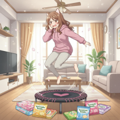 【朗報】母の日にトランポリンと蒟蒻畑を貰った奥様、ダイエット決意するも10回跳んで挫折www