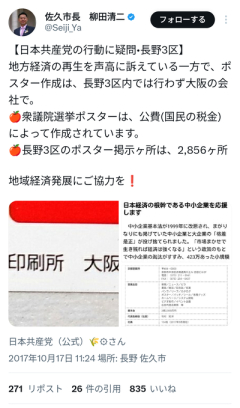 日本共産党さん、議員の父が役員を務める印刷会社で選挙ポスターなどあらゆるものを発注かとSNSで問われる
