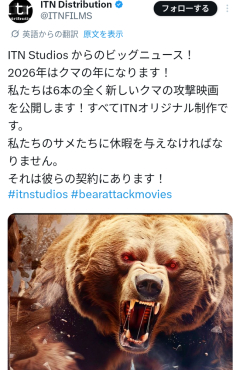 転載元: それでも動く名無し 2025/11/08(土) 18:19:47.54 ID:EXDpECsK0 2: それでも動く名無し 2025/11/08(土) 18:20:49.76 ID:ScwHo0La0 次は熊がゾンビになったり空飛んだりするんか 3: それでも動く名無し 2025/11/08(土) 18:21:04.61 ID:kAAaq9Gs0 タイミング最悪なのか最高なのかどっちや 5: それでも動く名無し 2025/11/08(土) 18:21:39.21 ID:znD/nz8u0 日本で過去1盛り上がってるからしゃーない…