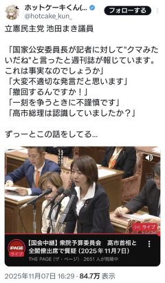 1:2025/11/08(土) 19:58:18.32 ID:6+A7T9Tt0こんなくっだらねー質問の為に高市総理の睡眠時間が取れないなんて!😫とにかく皆んな立憲民主に投票するな! — 真🇯🇵sin_nipponAE3803@ (@Sin_nippon) November 7, 2025無駄に議員が多いから立憲民主党に与えられる質問時間が長い→しかし、ご存知のように立憲民主党には有能な国会議員がほぼいない→故に低レベルな質問で時間を消化するしかない。今の国会のシステムが、くだらなすぎるのではないだろうか。 — 冨田格(いたる) (@itaru1964) November 8, 2025転載元スレッド:…
