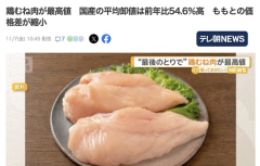 1 : 物価高騰のなか、「家計の味方」ともいわれる鶏肉の価格も高騰しています。なかでも鶏むね肉は統計の残る1990年以降、最高値となっています。 9月の国産鶏むね肉の平均卸値は、去年の同じ月と比べ54.6%高い1キログラム589円でした。 食肉として最も安価な部類に入る鶏むね肉は、物価高のなか「最後のとりで」とされていますが、統計の残る1990年以降で最高値をつけました。 一方、鶏もも肉の卸値は768円で、むね肉との価格差が急激に小さくなっています。 続きは↓ 鶏むね肉が最高値 国産の平均卸値は前年比54.6%高 ももとの価格差が縮小 2 : >「最後のとりで」 鶏だけに 35 : >>2 胸をいためてる…