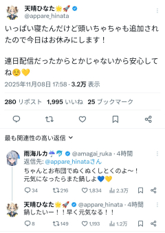 引用元: 12: Vtuberまとめ2025/11/09(日) 07:58:57.89 ウェザプラあったけぇ…😭 22: Vtuberまとめ2025/11/09(日) 07:59:32.80 >>12 てぇてぇなぁ 43: Vtuberまとめ2025/11/09(日) 08:00:41.28 >>12 二人だと虐めも仲間外れも無いからな 46: Vtuberまとめ2025/11/09(日) 08:00:49.07 >>22 てぇてぇこれ考えて広めたのは月ノ美兎マメな 71: Vtuberまとめ2025/11/09(日) 08:02:01.48 >>12 この人気無い方はなんでこんなに配信休むの? 75: Vtuberまとめ2025/11/09(日) 08:02:14.07 >>46 創価学会だぞ 82: Vtuberまとめ2025/11/09(日) 08:02:37.84 >>12 Twitterでやるのは営業くさい 93: Vtuberまとめ2025/11/09(日) 08:03:19.59 >>75 ( ・᷄ᯅ・᷅ )人間革命する? 106: Vtuberまとめ2025/11/09(日) 08:04:00.99 >>93 僅かな時間を見つけて? 119: Vtuberまとめ2025/11/09(日) 08:04:40.77 >>12 これLINEだのdiscordでやり取りしろよ わざとらしくて逆にキモイって 149: Vtuberまとめ2025/11/09(日) 08:06:09.72 >>71 体調悪いって書いてんじゃん むしろ配信しないのに支える養分どもがなんでか聞きたい 162: Vtuberまとめ2025/11/09(日) 08:06:51.76 >>71 普段はサボるけど金が欲しい時だけたまに配信する ホロライブにはいないね 171: Vtuberまとめ2025/11/09(日) 08:07:10.75 >>12 リアル友達なんだっけ? 195: Vtuberまとめ2025/11/09(日) 08:08:39.49 >>162 るかはちゃんと生誕祭だけ頑張って配信したぞ! 203: Vtuberまとめ2025/11/09(日) 08:09:01.91 >>195 るかじゃねーろあだ 219: Vtuberまとめ2025/11/09(日) 08:09:55.68 >>203 そりゃ年に数回の集金だしな…