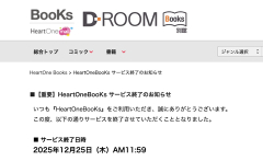 1:以下、5ちゃんねるからVIPがお送りします 2025/11/08(土) 06:51:48.604 ID:uoFiDgcX0 購入済み書籍に関する補填や補償、一切なし ■【重要】HeartOneBooKs サービス終了のお知らせ…