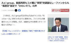 1 : Aぇ! group、動画再開もコメ欄に“草間”待望論なし…ファンからも“黒歴史”認定で「かわいそう」の声 11月4日、Aぇ! groupの公式YouTubeチャンネル『Aぇちゅーぶ』が約1か月ぶりに更新され、ファンからの歓喜のコメントが殺到。 だが、活動休止中の草間リチャード敬太への声はほぼ皆無というくらい見られなかった。 まるで草間リチャードがいなかったことのようになっているコメント欄に対して、ネット上には《かわいそう》《早く戻ってきてね》といった声も。全文はソースで 2 : 草 3 : 可哀想…