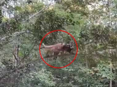 枝の上を歩きだす猫さん。 ・・・わわわっ! すると……