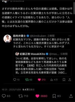 「立花孝志」の逮捕についてサヨク界隈からも「不当逮捕」ではないかと声が上がり始める