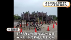 1 :ぐれ ★ :2025/11/10(月) 08:15:39.96 ID:oBLGIsDW9 足をかけたらボルトが…公園で遊具のはしごが外れて30代男性が約1.5mの高さから転落 デッキで腰などを打つケガ— 東海テレビニュースONE (@tokai_newsone) 2025年11月10日 6 :名無しどんぶらこ :2025/11/10(月) 08:17:27.64 ID:hNK+pucu0 俺たちなら死んでた 7 :名無しどんぶらこ :2025/11/10(月) 08:18:23.65 ID:PGXFr3Gy0 これでまた公園遊具が減ってしまうな…