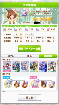 22: 名無しのトレーナー 25/11/10(月) 11:24:01 ID:Ka.oq.L29 クラス6いよいよ無理ゲーになってきたな降級ライン320万とかどうすりゃええんや 26: 名無しのトレーナー 25/11/10(月) 11:24:51 ID:FR.ug.L14 温泉で更新できる気がしないけど無人島の更新分で上振れ360~370万は出せるし最悪更新できなくても大丈夫かね? 42: 名無しのトレーナー 25/11/10(月) 11:28:12 ID:Gv.jh.L69 スピ因子借りて賢抜いた評価育成するだけで6ラインは余裕で維持できそう 46: 名無しのトレーナー 25/11/10(月) 11:28:54 ID:YI.ug.L16 最初に賢温泉掘るからパワ因子欲しいねんな 48: 名無しのトレーナー 25/11/10(月) 11:29:42 ID:FR.ug.L14 賢抜きだとあほあほ賢さ7,800くらいのしかできない自信があるこれやとスキル発動率せいぜい85%前後やろ…? 54: 名無しのトレーナー 25/11/10(月) 11:31:08 ID:YI.ug.L16 賢抜きに実用性あるわけないので評価盛りに決まってるじゃん 55: 名無しのトレーナー 25/11/10(月) 11:31:08 ID:MS.sa.L11 イクノさん以外で賢さ抜きやるとみたいなのが出来上がる 60: 名無しのトレーナー 25/11/10(月) 11:31:49 ID:Gv.jh.L69 6維持って言ってる時点でチムレ用の話 63: 名無しのトレーナー 25/11/10(月) 11:33:25 ID:FR.ug.L14 賢さ1400のスキル発動率95%くらいと800前後の85%前後で基礎点と発動率分だとやっぱ基礎点のが上ではあるか?こごえるかぜはともかくだいもんじを何度も当て続けないと… 68: 名無しのトレーナー 25/11/10(月) 11:36:48 ID:VU.g9.L54 賢さ1400なら約93.6%賢さ800なら88.75%5%も差無いから基礎点上げていけ 71: 名無しのトレーナー 25/11/10(月) 11:37:26 ID:MS.sa.L11 チムレランキング上位のデッキ見たらええみんな賢さ抜きのアホアホや 72: 名無しのトレーナー 25/11/10(月) 11:37:59 ID:FR.ug.L14 無人島やと賢さ補正オワコンだったけど今回は賢さ補正が神ってことね差しタクト抜きたくねえな… 75: 名無しのトレーナー 25/11/10(月) 11:38:32 ID:8T.ca.L28 昔アオハル産の賢さだけ高いのばっか置かれてたのと逆になったな 引用元: 【おんJ】ウマ娘 プリティーダービー部 第11784レース 管理人 ランキング上位見てみたらほんとにみんなアホの子だったw…