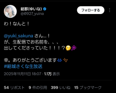 引用元: 471: Vtuberまとめ2025/11/11(火) 18:53:49.94 さくたんラブライブ声優に認知されます 501: Vtuberまとめ2025/11/11(火) 18:54:40.12 >>471 ガチで誰だよ 503: Vtuberまとめ2025/11/11(火) 18:54:46.29 >>471 俺のゆいにゃ… ホロライブや脱ホロに関わらないでほしい… ラブライブブランドが傷つく… 513: Vtuberまとめ2025/11/11(火) 18:55:04.12 >>471 マルガレーテちゃんか 566: Vtuberまとめ2025/11/11(火) 18:57:11.16 >>501 マルガレーテ知らないとかやばいだろ 613: Vtuberまとめ2025/11/11(火) 18:58:50.91 >>471 逆になんでこいつはさくなを知ってるの? ろくに配信もしてないのに 629: Vtuberまとめ2025/11/11(火) 18:59:19.59 >>613 あっ 635: Vtuberまとめ2025/11/11(火) 18:59:36.86 >>613 そらリスナーが聞いてもいないのに報告にいくでしょ 803: Vtuberまとめ2025/11/11(火) 19:05:24.00 >>613 知る機会なんていくらでもあるんじゃないか? サンシャイン水族館とか色んなコラボしてるし…