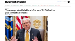 トランプ大統領、国民に2,000ドルの関税配当金を支払うと発表