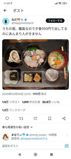 【画像】五島列島で食べられる550円の夕食がこちらwwwwww