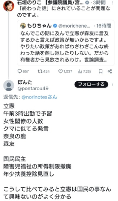 1 名前:名無しさん@涙目です。[sage] 投稿日:2025/11/11(火) 13:04:42.62 ID:mMP+F4u70 2 名前:名無しさん@涙目です。[] 投稿日:2025/11/11(火) 13:05:43.20 ID:fT17ZgKb0 未だになにが問題か言えないのが悪いのでは? 4 名前:名無しさん@涙目です。[sage] 投稿日:2025/11/11(火) 13:06:04.53 ID:qBRm9MkJ0 終わらせることができなかった無能のせいでしょ 31 名前:名無しさん@涙目です。[] 投稿日:2025/11/11(火) 13:19:33.02 ID:01ND/JHf0 森友結局何が問題だったの 8 名前:名無しさん@涙目です。[] 投稿日:2025/11/11(火) 13:07:40.85 ID:ogfRitOG0 だから何を騒いでるのか出せよ てか、財務省に聞けよ 7 名前:名無しさん@涙目です。[] 投稿日:2025/11/11(火) 13:07:36.36 ID:BmWvOSpY0 問題を一回整理し直して公開してくれ いつも疑惑が深まるだけじゃないか 7 名前:名無しさん@涙目です。[sage] 投稿日:2025/11/11(火) 07:57:19.71 ID:0W4BWw1U0 ほな関西生コンと辻元の事も追及せーよ 23 名前:名無しさん@涙目です。[] 投稿日:2025/11/11(火) 13:13:55.46 ID:oo45tC1t0 終わってなかったならなんで今更また出してきた? 3 名前:名無しさん@涙目です。[sage] 投稿日:2025/11/11(火) 13:06:00.81 ID:BK8T8jvr0 なんで岸田と石破のときは黙ってたん? 120 名前:名無しさん@涙目です。[] 投稿日:2025/11/11(火) 14:38:22.88 ID:VxE4RaAB0 >>3 それな 68 名前:名無しさん@涙目です。[] 投稿日:2025/11/11(火) 13:42:30.67 ID:srgt/jLL0 裁判終わって決着ついただろ 90 名前:名無しさん@涙目です。[] 投稿日:2025/11/11(火) 14:08:11.20 ID:/so+qcft0 >>68 これ いつまでも引っ張るな 他にやることいっぱいあるだろ 11 名前:名無しさん@涙目です。[] 投稿日:2025/11/11(火) 13:08:49.86 ID:pyeLqOqX0 まともな政策議論できる人いないの? 25 名前:名無しさん@涙目です。[] 投稿日:2025/11/11(火) 13:14:42.13 ID:JlAm8NNC0 >>11 ないから週刊誌ネタで騒ぐしかない 93 名前:名無しさん@涙目です。[] 投稿日:2025/11/11(火) 14:08:56.37 ID:pz3h8ByC0 >>11 週刊誌のスキャンダルネタでしか質問出来ない政党だし…いつまでも永遠にモリトモモリトモ 29 名前:名無しさん@涙目です。[sage] 投稿日:2025/11/11(火) 13:17:42.93 ID:/USXy6CA0 いまひるおび見てて思ったけど これ民放が立憲役者に使って国会でドラマ撮影してるんだな 頭が悪いんじゃなくて全部民放の台本 52 名前:名無しさん@涙目です。[] 投稿日:2025/11/11(火) 13:32:24.63 ID:BatCNsSc0 >>29 そういう言いかたも可能だし要は安普請の『テレポリティクス』だよな ワイドショーで使い易くなるように道具を用意してカメラ目線で踊っている田舎芝居 37 名前:名無しさん@涙目です。[] 投稿日:2025/11/11(火) 13:24:47.43 ID:fgljVF8p0 森友ばっかりだけどあれだけ無駄に騒いだ加計問題は終わった話なのか? 54 名前:名無しさん@涙目です。[sage] 投稿日:2025/11/11(火) 13:33:06.51 ID:xIj6G+i00 モリカケで確実に問題だったのは、障害者の職員が資料をシュレッダーしたと障害者職員に責任なすりつけたことだな 133 名前:名無しさん@涙目です。[] 投稿日:2025/11/11(火) 15:19:47.87 ID:P7pXYqIp0 >>54 あれは共産党の言いがかりで、前々から決まったスケジュール通りに 保存期限の過ぎた書類が処分されただけ 136 名前:名無しさん@涙目です。[] 投稿日:2025/11/11(火) 15:25:45.39 ID:DfmFHn0X0 >>133 なぜかシュレッダーされた直後に共産党がタイミングよくその質問をしたという問題だったな 49 名前:名無しさん@涙目です。[sage] 投稿日:2025/11/11(火) 13:29:57.61 ID:8zFtZ37l0 マスコミと野党が自殺に追い込んだ事件か あったな 5 名前:名無しさん@涙目です。[] 投稿日:2025/11/11(火) 13:06:52.18 ID:tvmYpBGj0 で、何が問題なん? 173 名前:名無しさん@涙目です。[sage] 投稿日:2025/11/11(火) 16:54:59.99 ID:JnEccVQ20 >>5 ミンス議員が官僚をいびって自殺者を出したこと 27 名前:名無しさん@涙目です。[sage] 投稿日:2025/11/11(火) 13:15:24.71 ID:KNK+myRw0 せやな、 赤木さんを自殺に追いやった立憲共産を許しちゃいかんよな 45 名前:名無しさん@涙目です。[] 投稿日:2025/11/11(火) 13:27:30.49 ID:Qa+TEZfw0 その通り、森友問題を終わらせてはいけない 赤木さんが悩んでいたのは「国会対応」 何も無いところに野党が疑惑を作り出したから 担当だった赤木さんを追い詰めた。 その事が手記に書いてあると思うんだけどな。 6月に開示されて、「これで真相解明だ」と意気込んでたけど その後の報道はないですね。 69 名前:名無しさん@涙目です。[] 投稿日:2025/11/11(火) 13:44:18.93 ID:CgzNgVfX0 >>45 財務省に裁判所から開示命令が出て財務省が文書を開示したけどほとんど続報が無いな。 逆に赤木さん妻に記者と不倫記事などの話が出ていたけど 86 名前:名無しさん@涙目です。[sage] 投稿日:2025/11/11(火) 14:05:28.09 ID:kCXQ+3VP0 赤木氏の奥さんと取材した記者がどっぷり不倫して記者の内縁の妻に損害賠償請求された件を蒸し返したいとはチャレンジャーだな 152 名前:名無しさん@涙目です。[] 投稿日:2025/11/11(火) 15:53:58.80 ID:n/RrESBL0 理論的に説明出来ない事を延々と繰り返す 朝鮮諺の『嘘でも100回繰り返せば真実になる』を思い出した 73 名前:名無しさん@涙目です。[] 投稿日:2025/11/11(火) 13:46:36.98 ID:cEXYcxUm0 コイツら何の回答欲しいんか自分らでもわかってない 79 名