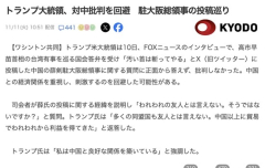 1 : トランプ大統領、対中批判を回避 駐大阪総領事の投稿巡り(共同通信) - Yahoo!ニュース 【ワシントン共同】トランプ米大統領は10日、FOXニュースのインタビューで、高市早苗首相の台湾有事を巡る国会答弁を受け「汚い首は斬ってやる」とX(旧ツイッター)に投稿した中国の薛剣駐大阪総領事に関する質問に正面から答えず、批判しなかった。中国との経済関係を重視し、刺激するのを回避した可能性がある。 司会者が薛氏の投稿に関する経緯を説明し「われわれの友人とは言えない。そうではないですか?」と質問。トランプ氏は「多くの同盟国も友人とは言えない。中国以上に貿易でわれわれから利益を得てきた」と返答した。 トランプ氏は「私は中国と良好な関係を築いている」と強調した。 8 : どういう意味? 811 : >>8 日本はアメリカの友人ではない…