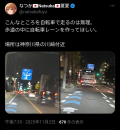 【画像】自転車乗りさん、泣く 「こんなとこ走るの無理😭」