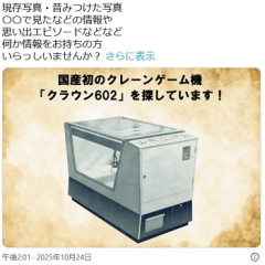 @TAITO 1: 名無しさん 2025/11/10(月) 21:48:10.905 ID:y73248/i0 3: 名無しさん 2025/11/10(月) 21:48:55.245 ID:gmD0bNsd0 クレーンゲーム? 5: 名無しさん 2025/11/10(月) 21:50:06.331 ID:H/W5nybV0 カプセル掴む系か 7: 名無しさん 2025/11/10(月) 21:51:01.955 ID:xcAao4xs0 家の近所のゲーセンで昔に見たな 8: 名無しさん 2025/11/10(月) 21:51:16.445 ID:s5X1oR5V0 初期のUFOキャッチャーだな 11: 名無しさん 2025/11/10(月) 21:51:49.116 ID:BkmXFiH40 似たようなのは見たけどその原型か 12: 名無しさん 2025/11/10(月) 21:51:52.994 ID:f1iTwwVv0 似たようなのは割と最近でもあるよな ちっちゃいお菓子をつかんだりする感じの 13: 名無しさん 2025/11/10(月) 21:51:58.084 ID:WiO3I9W30 地元のクソ田舎のボーリング場にあったなこれ 14: 名無しさん 2025/11/10(月) 21:52:36.471 ID:8dX8pqSH0 これ3本アームのやつか!ぶらぶらして定めにくかったの覚えてるでもこれと違ってほぼガラス張りだった 16: 名無しさん 2025/11/10(月) 21:52:53.647 ID:y73248/i0 見たって意見もあるけどほとんどが後継機や模倣品が多いと思う 17: 名無しさん 2025/11/10(月) 21:53:18.386 ID:+XfXgiEU0 お菓子のつかみ取りするやつ?…
