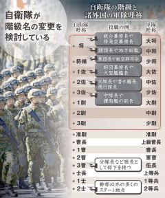 政府、自衛隊の階級名変更検討 「1佐→少佐」「1曹→曹長」や「普通科→歩兵科」など