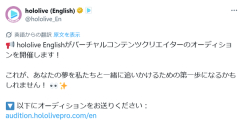 📢 hololive English is holding auditions for virtual content creators!This could be your first step to chasing your dreams together with us! 👀✨🔽 Send us your audition below: pic.twitter.com/vSHsZU3CYX— hololive (English) (@hololive_En) November 12, 2025…