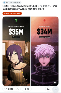 アメリカでチェンソーマンが呪術超えた