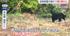 【動画】10頭のクマ軍団、田んぼを大行進…