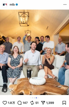 転載元: 鉄チーズ烏 ★ 2025/11/13(木) 19:18:46.03 ID:L52k/2Du9 2025年11月13日 15:40 野球 スポニチアネックス取材班 大リーグのサイ・ヤング賞が12日(日本時間13日)に発表され、ナ・リーグはパイレーツのポール・スキーンズ投手(23)が初受賞。MLBの公式インスタグラムでは恋人オリビア・ダンや両親らと祝う姿が公開された。 メジャー2年目のスキーンズは今季32試合に登板し、10勝10敗ながら、両リーグ唯一の1点台となる防御率1・97と圧倒的な数字を残し、米野球記者協会員30人全員から1位票を集め、満票選出となった。 白シャツにチノパン姿のスキーンズは受賞が決まると、恋人のダンと真っ先に抱き合い、笑顔で栄誉ある賞を喜んだ。ダンはスキーンズと同じルイジアナ州立大出身の元体操選手で、インスタグラムのフォロワー数が540万人を超えるインフルエンサーとしても知られ、学生時代からスポンサー収入は年間3億円以上とも言われている。 MLBの公式インスタグラムは中継を見ながら笑みを浮かべるスキーンズやダン、両親の写真やスキーンズとダンがサイ・ヤング賞を祝う特製ケーキを前に仲睦まじい姿などを公開した。…