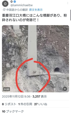 中国四川省の橋、開通後数ヶ月で崩壊 橋脚手抜き工事の疑いも