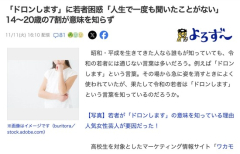 1 : 昭和・平成を生きてきた人なら誰もが知っていても、令和の若者には通じない言葉は多いだろう。例えば「ドロンします」という言葉。 その場から急に姿を消すときによく使われていたが、果たして令和の若者は「ドロンします」という言葉を知っているのだろうか。 高校生を対象としたマーケティング情報サイト「ワカモノリサーチ」はこのほど、全国の14~20歳男女935人を対象に「ドロンします」という言葉の意味の認知度を調査。その結果、実に7割(69.1%)が「わからない」と回答した。 3 : NARUTOももう昔の漫画か 6 : 3割は知ってるんかい…