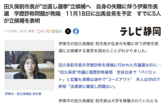 1 : 伊東市の田久保眞紀 前市長が自身の失職に伴う伊東市長選に立候補する意思を固めたことがわかりました。 伊東市の田久保眞紀 前市長は大学を除籍されていたにもかかわらず市の広報誌などに「東洋大学法学部卒業」と記した学歴詐称が問題となり、市議会から二度にわたって不信任を議決され、10月31日をもって失職しました。 こうした中、田久保前市長が12月7日に告示される伊東市長選(同月14日投開票)に立候補する意思を固めたことがわかりました。 11月18日にも市内で出馬会見を開く見通しです。 全文はソースで 3 : 票がバラけて田久保当選の未来しか見えない 5 : 元市長でいいや ほかの知らんし…