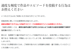 1: 2025/11/14(金) 13:21:38.13 過度な頻度で作品やエピソードを投稿する行為はお控えください いつもカクヨムをご利用いただきありがとうございます。 投稿利用に際しての注意事項をお知らせします。 過度な頻度でカクヨムへ作品やエピソードの投稿を行うことはお控えください。 「過度な頻度」とは、通常の創作活動では考えられないような 膨大な量を短期間で投稿する行為を想定しています。 例えば、短期間で大量の作品やエピソード投稿が行われると、 読者が新しい作品と出会う場である「新着小説」が機能しなくなってしまう等、 他の利用者にとって不利益が生じてしまいます。 そのような事態を防ぐため、ご利用の皆さまには 常識的な頻度・量で投稿していただくことをお願いいたします。 作品やエピソードの投稿等でこれらのケースに当てはまる行動を確認した場合は、 作品公開停止やアカウント利用停止など運営として然るべき対応を行わせていただいております。 なお、過去に他のサイトで投稿されていた作品の転載であることが確認できる場合、 あるいは、俳句や短歌の作品投稿の場合などは、本事由に該当いたしません。 ユーザーの皆さまが心地よく創作や読書に取り組める環境づくりのため、 ご理解いただけますと幸いです。 ※関連記事 【画像】この漫画の「ダメ人間」と付き合っている彼女の話、少し怖くて草wwwww…