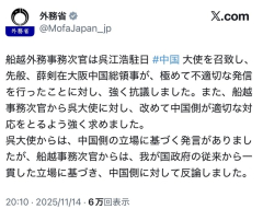 転載元: それでも動く名無し 2025/11/14(金) 21:51:47.79 ID:wgaItJ6D0 ええやんどんどん説教しろ ※船越外務事務次官は呉江浩駐日 #中国 大使を召致し、先般、薛剣在大阪中国総領事が、極めて不適切な発信を行ったことに対し、強く抗議しました。また、船越事務次官から呉大使に対し、改めて中国側が適切な対応をとるよう強く求めました。…— 外務省 (@MofaJapan_jp) November 14, 2025…