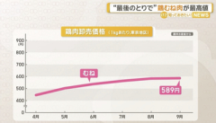 1: ななしさん@発達中 2025/11/07(金) 14:15:18.91 ID:Wpuh9ftq9 鶏むね肉が最高値 国産の平均卸値は前年比54.6%高 ももとの価格差が縮小物価高騰のなか、「家計の味方」ともいわれる鶏肉の価格も高騰しています。なかでも鶏むね肉は統計の残る1990年以降、最高値となっています。 9月の国産鶏むね肉の平均卸値は、去年の同じ月と比べ54.6%高い1キログラム589円でした。 食肉として最も安価な部類に入る鶏むね肉は、物価高のなか「最後のとりで」とされていますが、統計の残る1990年以降で最高値をつけました。 一方、鶏もも肉の卸値は768円で、むね肉との価格差が急激に小さくなっています。 続きは↓ 鶏むね肉が最高値 国産の平均卸値は前年比54.6%高 ももとの価格差が縮小…
